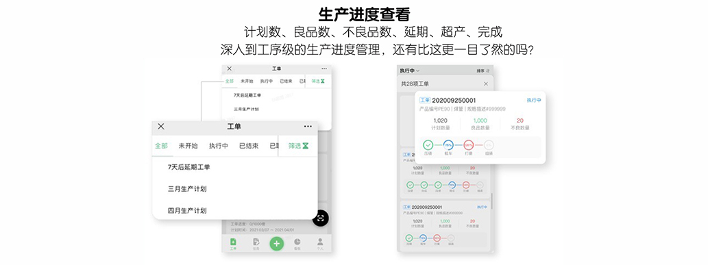 生產(chǎn)進度實時可查,異常信息實 時記錄,及時發(fā)現(xiàn)風險,減少浪 費快速分配生產(chǎn)任務(wù),規(guī)范化生產(chǎn) 作業(yè),防呆防錯,減少生產(chǎn)等待 時間