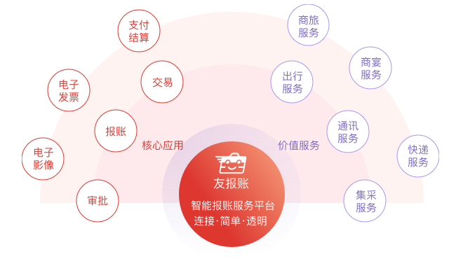 友報賬為企業(yè)提供專業(yè)化的報賬服務和連接服務,創(chuàng)造企業(yè)財務新價值。作為企業(yè)財務數(shù)據(jù)采集終端,面向企業(yè)全員應用,并整合社會資源,為企業(yè)員工提供端到端的一站式互聯(lián)網(wǎng)服務,打通從申請、審批、交易、報賬、支付、核算、報告所有環(huán)節(jié),實現(xiàn)數(shù)據(jù)不落地,全線上應用,全程管控